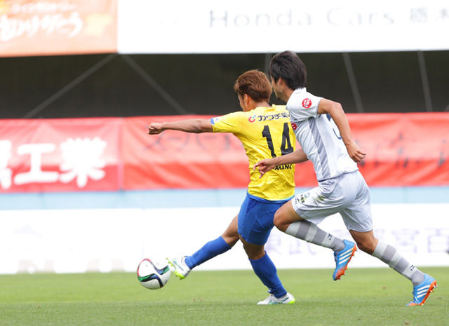 「北関東ダービー」の初戦となったこの試合は、1ヵ月以上も勝利から見放されていた栃木が、その鬱憤を晴らすような素晴らしい戦いを見せた。しっかりとボールを収める阪野と、精力的に動き回る松村の2トップが中心となって攻撃をリード。さらに、中盤の選手も果敢に攻め上がり、厚みのある攻撃を仕掛けていく。良いテンポは守備にも好影響を与え、鋭い出足から高い位置でボールを奪い、相手にリズムをつかませない。終始して主導権を握り、大量5ゴールを挙げるなど、会心のゲーム内容で栃木が久々の勝点3を手にした。