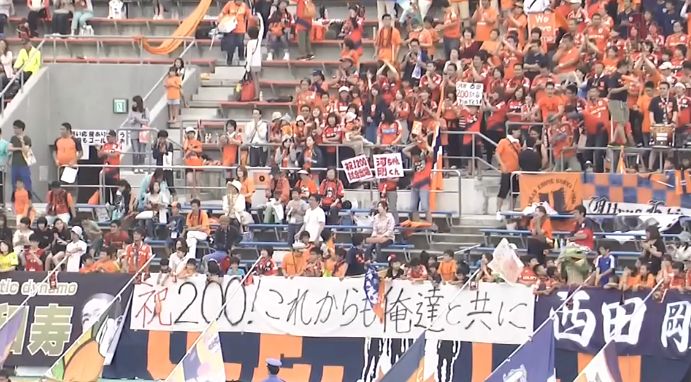 愛媛FCの西田剛と河原和寿はこの試合で通算200試合出場。