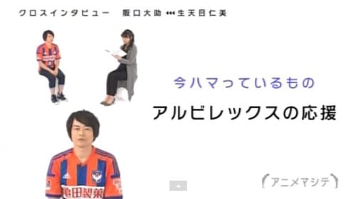 7月2日に放送されたテレビ東京のアニメ情報番組「アニメマシテ」に、アルビレックス新潟のサポーターとして知られる声優の阪口大助さんが出演。