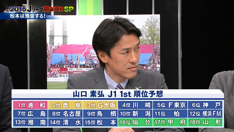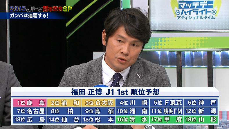 そこで、セカンドステージの前に、今年2月に放送されたスカパー!「Jリーグマッチデーハイライト ~アディショナルタイム~」の「2015 Jリーグ開幕直前スペシャル」の予想結果を振り返ってみました。