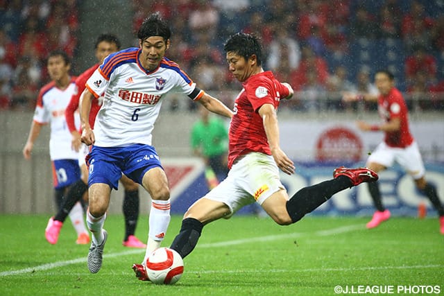 大量得点が求められる浦和は序盤から鋭い出足で攻勢を掛ける。しかし、新潟の前線からの連動したプレスに苦しめられてフィニッシュまで持ち込めない。スコアレスで迎えた後半は、李を投入して陣形を変更。これで流れが一気に浦和へ傾くと、後半10分と同13分に立て続けにゴールを奪う。新潟が選手交代で守備的にシフトしていくも、勢いは止まらず。同25分には、阿部がPKを沈めて追いすがる。その後も果敢に攻撃を続けるが、相手の粘り強い守備の前に追加点は奪えずに試合終了。合計スコアで新潟が準決勝進出を決めた。