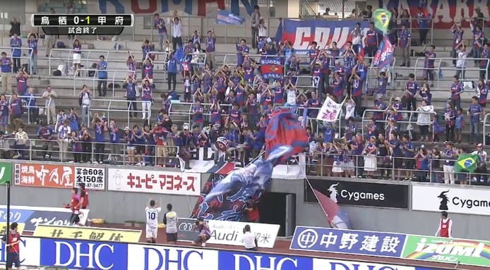 しずか姫ゲーフラ出動3試合目でようやく初勝利。鳥栖がデレステなら、甲府はガルパン(スピンオフ作品)や!明日は気持ち良くアニサカ水戸ラウンドへ行けるでー! #vfk http://t.co/z4ItUWDE6I