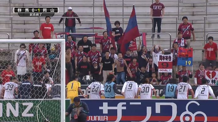 序盤から岡山の速いプレスに悩まされ、守備に追われる群馬。岩政のロングフィードを警戒してディフェンスラインが下がると、相手に中盤でパスを回される。前半35分には左サイドからのクロスから加地の先制弾を許す。防戦一方だった前半の状況を打開すべく、後半18分にボカ、同24分に中村を投入して攻撃の活性化を図る。すると、アタッキングサードでボールを保持できるようになり、攻勢に。しかし、高瀬と瀬川を中心にクロスを多用して再三のチャンスを作りながらも、決め切れずにタイムアップ。3連敗を喫した。