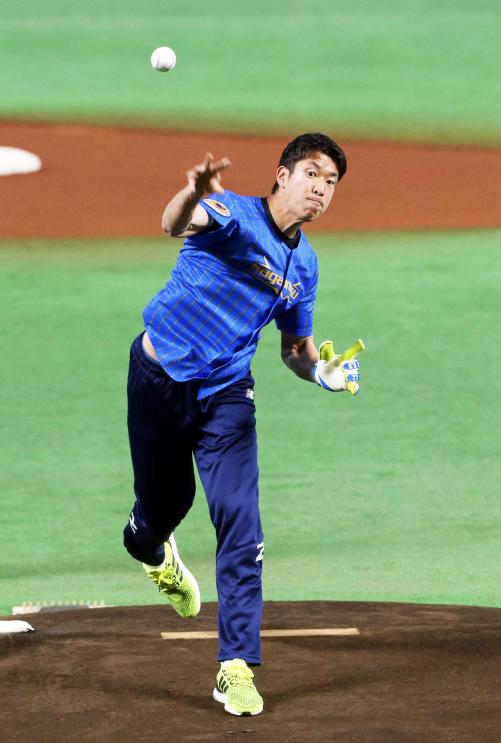 サガン鳥栖MF藤田直之が福岡ソフトバンクホークスの始球式務める ユベントス交流記念ユニも披露(2015年)
