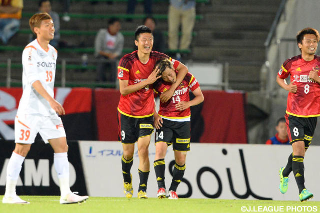 前半に安東の強烈な一撃で、先制点を奪った金沢。しかし、スコアとは裏腹に、両サイドをうまく使った愛媛の攻撃に苦しめられ、劣勢を強いられる。後半に入っても流れは変わらず、いつ追い付かれてもおかしくない状況が続く。セットプレーから追加点を決めるが、その後も1点差に詰め寄られるなど、冷や汗をかかされ続けた。それでも、辛くも逃げ切った金沢が、勝点3を獲得。勝つことの難しさをかみしめながら、今季ホーム初勝利を飾った。