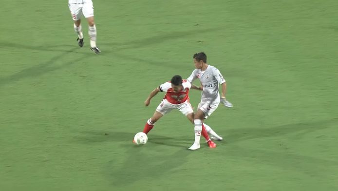 試合は岸田翔平と永井龍のゴールで長崎が勝利しましたが、その中で、ちょっと珍しいシーンがあったのでご紹介します。