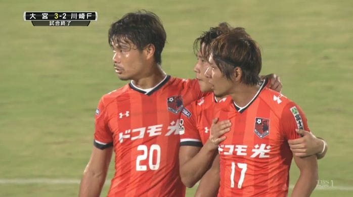 川崎Fの細かいパス回しに苦戦するも、決定的な場面を作らせなかった大宮に転機が訪れる。前半36分に大久保が退場になると、その後は一気にホームチームのペースに。同44分に家長がPKを決めて試合を折り返す。しかし、その有利も長くは続かない。後半に入ると、チャンピオンシップ進出がかかった川崎Fが、中村を中心に猛反撃を開始。後半36分までに2失点を喫してしまう。それでも、同39分に家長の得点で同点に追い付き、同44分には江坂が値千金のゴールを奪って逆転に成功。激しい打ち合いを制した。