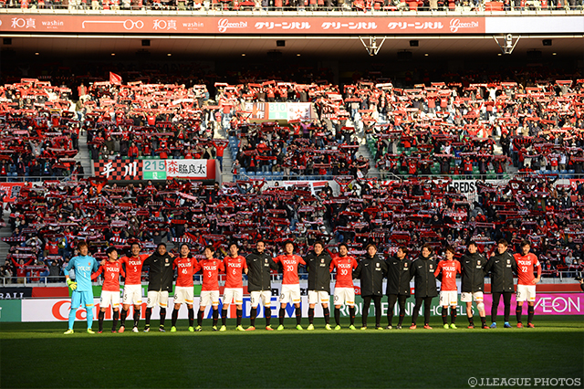 浦和は昨季プレーオフで昇格を決めたC大阪をホームに迎えた。序盤はゆっくり自陣でパスを回しながらロングボールを多用してディフェンスラインの背後を突いていく。これによって相手が深い位置まで引き始めると、シャドーを務める武藤と興梠が空いたスペースに入り込んでチャンスを創出し、前半22分に武藤が先制点を挙げる。同37分には武藤のスルーパスから生まれた決定機を興梠が押し込んで追加点を奪取。後半も安定した戦いぶりで、ラファエルシルバに2戦連続のゴールが飛び出すなど、チームとして順調な仕上がりを見せた。