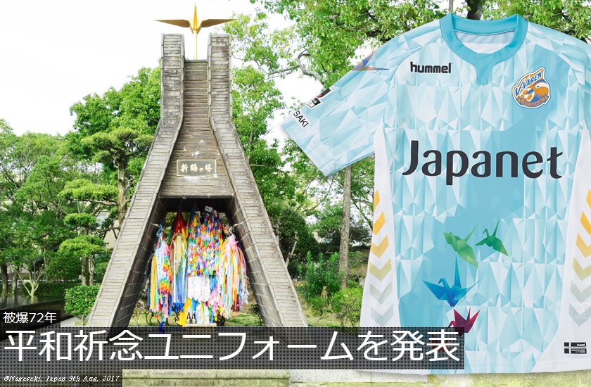 — ラーメン:ちなヴィヴィ (tina_ne) 2017, 7月 20V・ファーレン長崎と平和祈念ユニフォームを発表 ヒュンメル https://t.co/nPi8Dy14fF 今回の平和祈念ユニフォームは、折り鶴とタスキ、そしてナガサキの象徴にもなっている「平和祈念像」で表現。8面9点で描かれた折り鶴で8月9日を象徴しています。 #vvaren