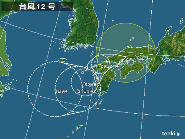 現在近畿地方から中国地方へ西進しており、あす朝にかけて九州に移動する見通しとなっています。