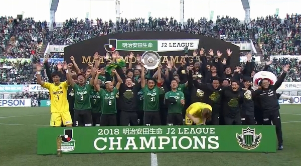 — あず (sJT0TlcED6shmwZ) 2018, 11月 17松本山雅優勝おめでとう!大分トリニータも昇格おめでとう!横浜、大宮、ヴェルディプレーオフで頑張れ~ Parabéns ao Matsumoto Yamaga, campeão da J2 e promovido para a J1… https://t.co/Z5qpjggSpA