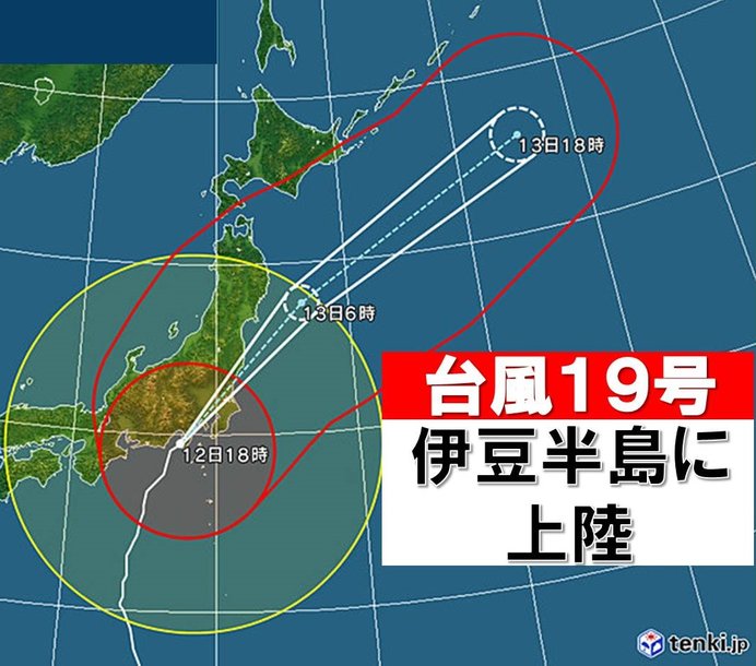 [tenki.jp]大型で強い台風19号 伊豆半島に上陸しました