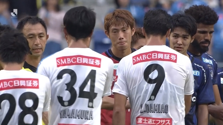 接触は、登里が倉田にぶつかりにいったというより、登里が倉田に寄せながら倉田とゴールの間に体を投げ出したのと倉田のヘディングシュートのフォロースルーがちょうどぶつかり合った感じだな