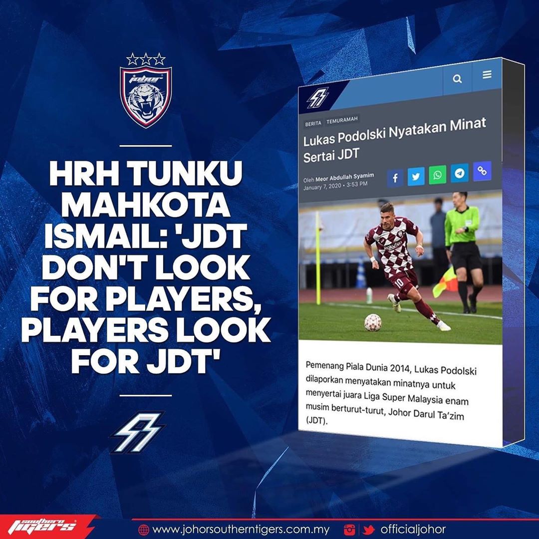 マレーシアの強豪クラブ、ジョホール・ダルル・タクジムFCはきのう、クラブ公式インスタグラムにクラブ代表のトゥンク・イスマイル・イドリス皇太子からのメッセージを掲載し、今シーズンに向けた補強について明かしました。
