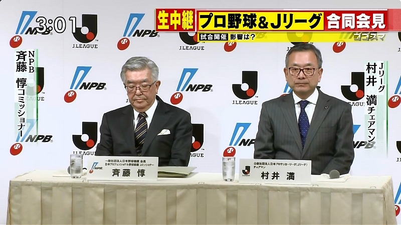 こういう時にプロ野球とJリーグが団結するのはいいことだ。 まあ各々でやるより合同会見のがスマートだしな