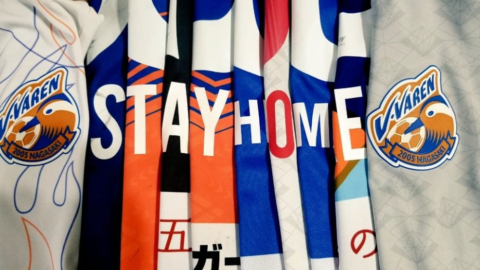 サッカーファンが思い思いの「Stay Home」呼びかけ ユニフォームやタオマフ並べる