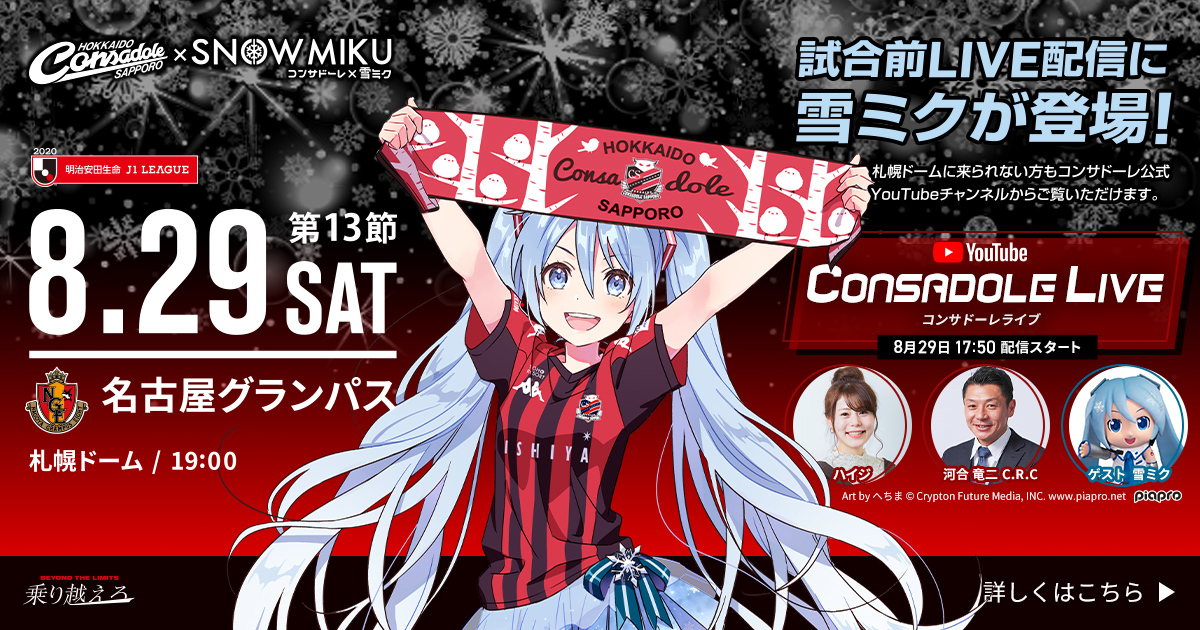 [札幌公式]☆雪ミク登場☆ 札幌ドームから生配信!「CONSADOLE LIVE(8/29 VS名古屋)」実施のお知らせ