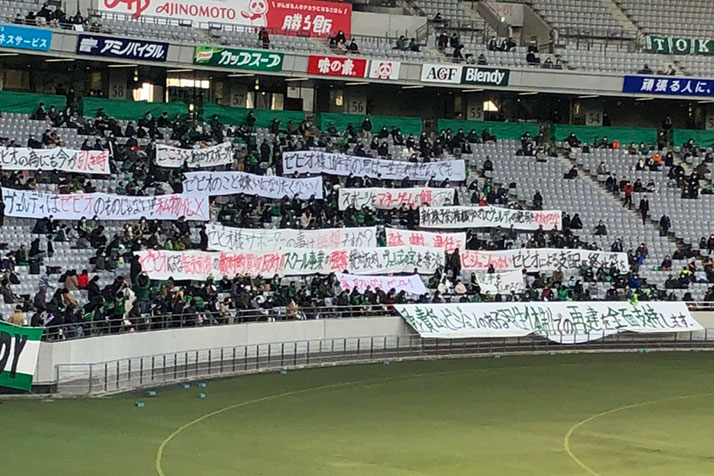 12月20日のホーム最終戦で羽生社長は涙ながらにクラブの窮状を訴え、サポーターは旧経営陣支持とゼビオ批判の横断幕を掲出。