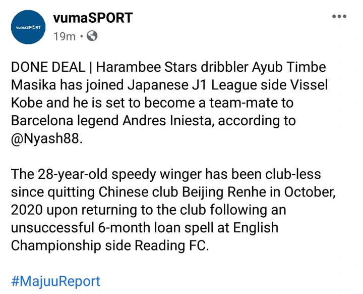 Ayub Timbe to Japanese side Vissel Kobe is a done deal 👌