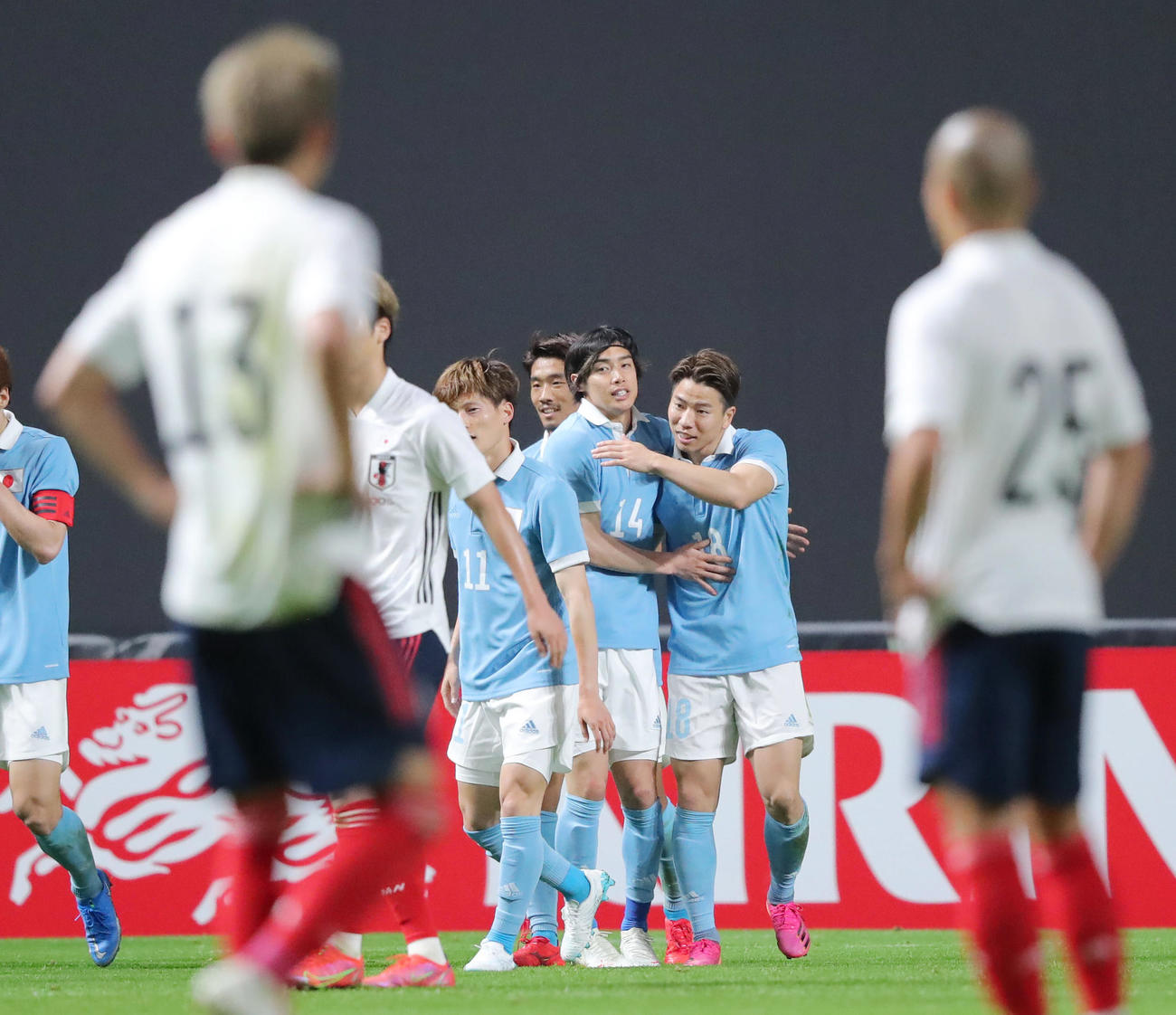 日本代表対U-24日本代表のチャリティーマッチが3日、札幌ドームで開催され、A代表が3-0で勝利した。前半開始早々にMF橋本拳人のゴールで先制し、その後も着実にゴールを重ねると、その後はU-24代表に主導権を握られる時間帯もあったがゴールを譲らず、貫禄を見せつけた。
