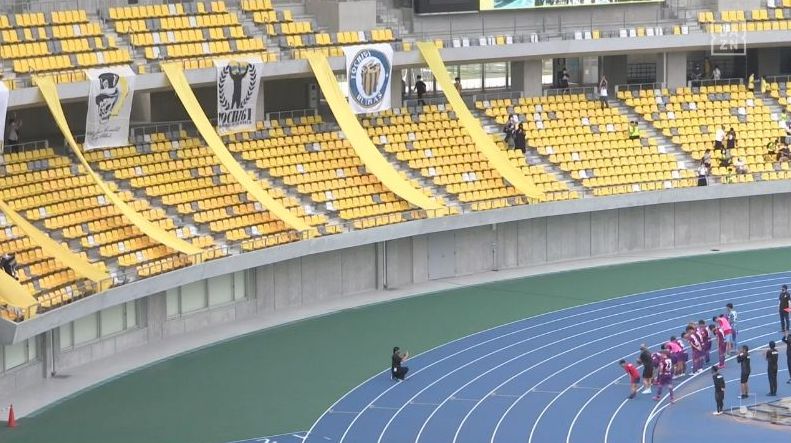 無人のアウェイゴール裏に挨拶するサンガの選手たち #京都サンガ https://t.co/07fDD9aRxf