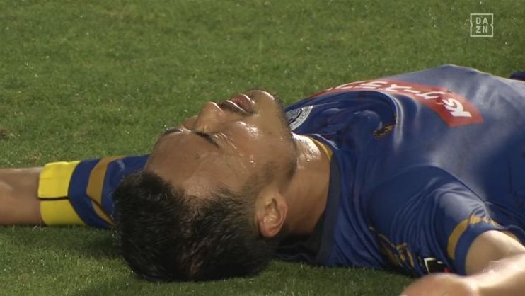 前に出ようと強引に腕振って飛んだあげく、ボールには触れず渡部流血させたあのプレーにカードすらないのはね…。呼吸にも支障ありそうなレベルでテーピングする羽目になるし散々だわ