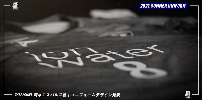 胸スポンサーには、クラブ史上初の「ion water(イオンウォーター)」を採用し、夏に着用するにふさわしい爽やかさをイメージしています。デザインの詳細は、7月11日(日)清水エスパルス戦のスタジアムにて発表します!