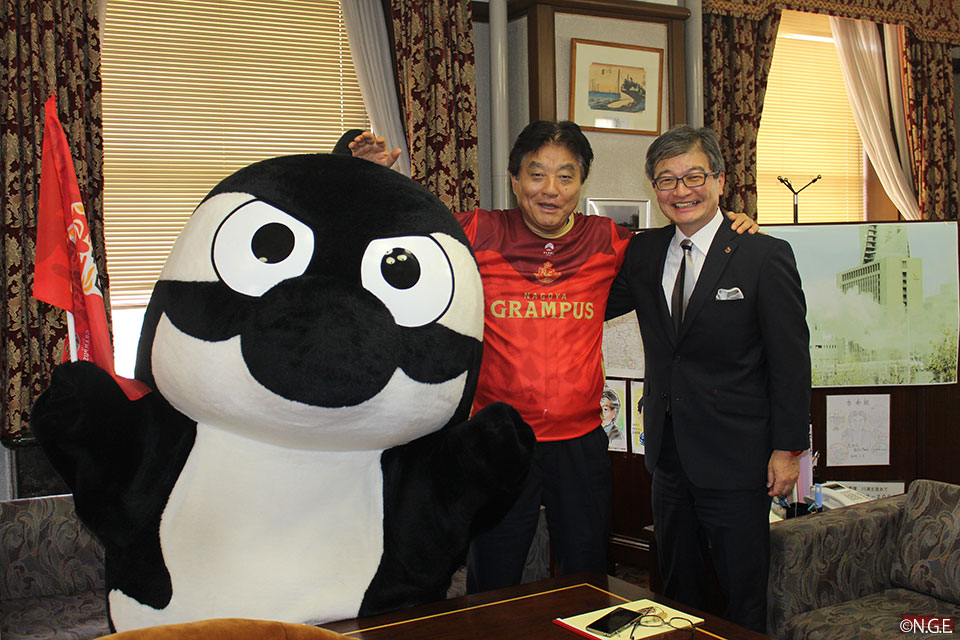 締結式には河村市長と名古屋グランパスの小西社長が出席する予定でした。