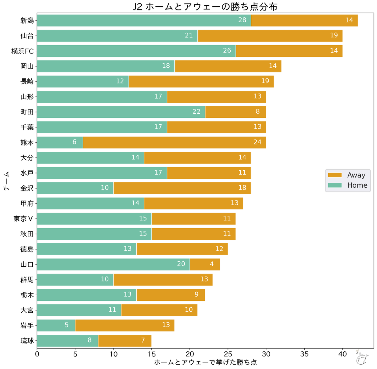 アウェーの勝ち点ではリーグダントツ、ホームの勝ち点ではブービー…ってそこまで極端だったのか