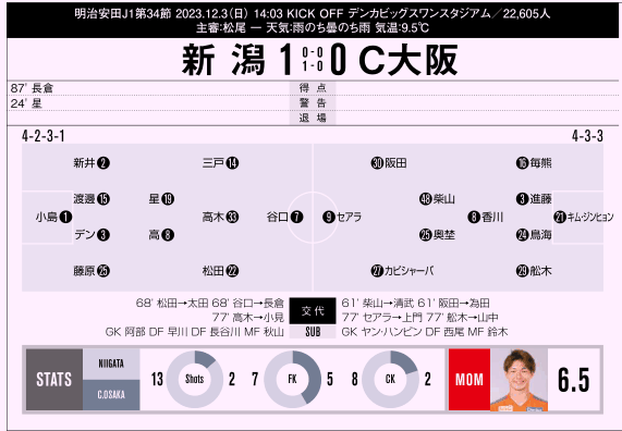 2023年 J1第34節 アルビレックス新潟 VS セレッソ大阪