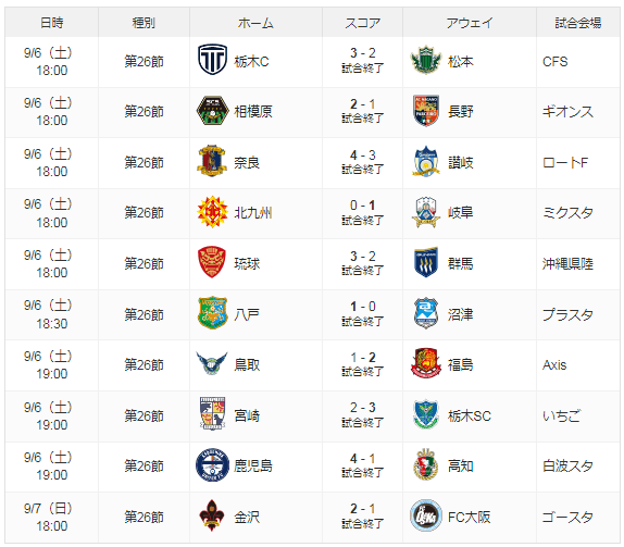 [スポーツナビ]J3第26節の日程・結果