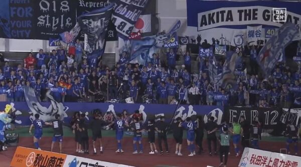 やったー!勝ったー!選手スタッフ監督サポーターが一体でものにした!めでたい!ラーララーラーラーラー We are AKITA!