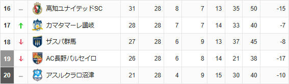 J3リーグは19位のチームがJFLとの入れ替え戦、20位のチームがJFL自動降格となります。
