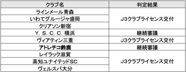 Jリーグは25日、JFLクラブに対する2026シーズンのJ3クラブライセンス判定結果を発表しました。
