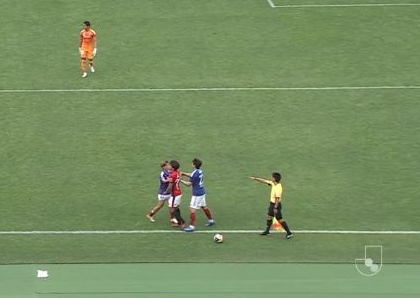 まず金子が先になんか副審に言って副審がそれで近づいてる感じだね。