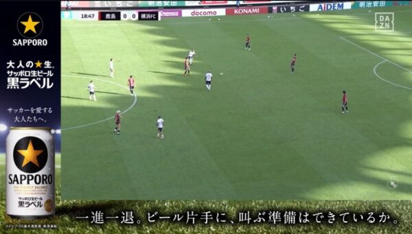 試合中にサッポロ黒ラベルの広告邪魔すぎる。余計に買う気失せるわ。DAZN高いくせに改悪ばっかり