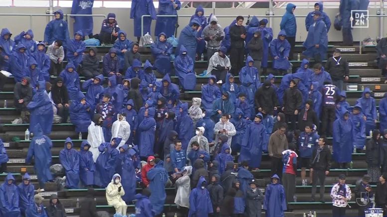 ウチの場合はバックスタンドに屋根がない為に雨天決行時は中々客が入らないから、サポーターグループの面々が「屋根付けて」段幕を出してたぐらいだし。