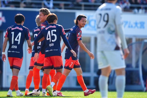 J2・J3百年構想リーグは21日、EAST-B第2節を行い、RB大宮アルディージャが福島ユナイテッドFCを6-0で下した。柏レイソルから期限付き移籍中のFW山本桜大が3試合連続ゴールを挙げ、ルーキーのFW松井匠が初先発で初アシスト。今冬の高校選手権で得点王に輝いた神村学園高出身の18歳FW日高元もデビューを飾り、チームは無傷の開幕3連勝を果たした。(以下略、全文はリンク先で)