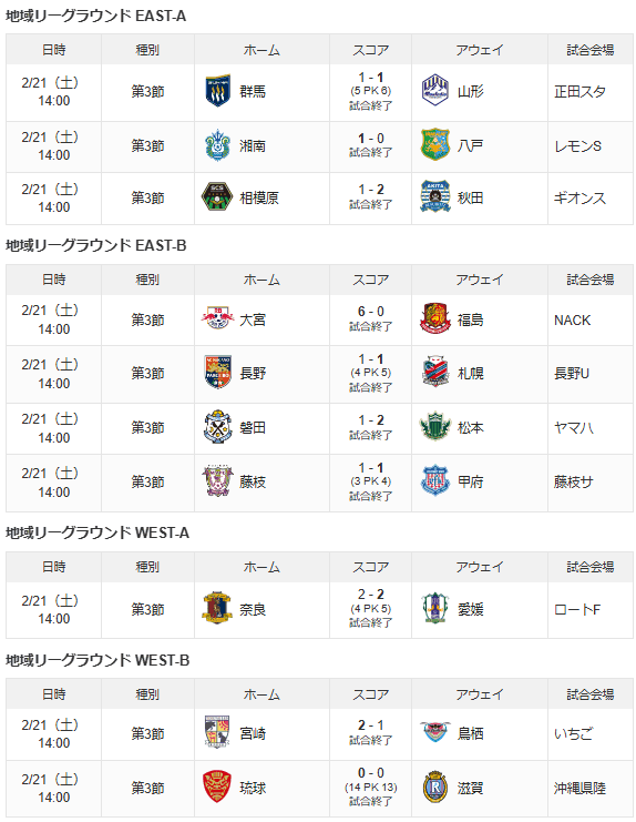 群馬vs山形、湘南vs八戸の結果とポストがあべこべに
