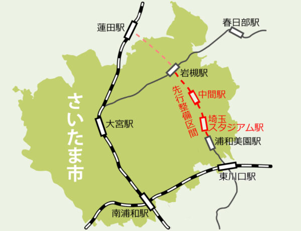 全線開通が15年後なのはわかるけど、浦和美園から1駅分ぐらいは数年でなんとかならんのかね