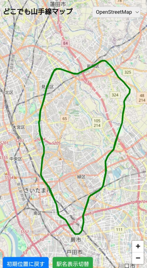 そこで山手線を浦和や浦和美園を通るように移植してみた